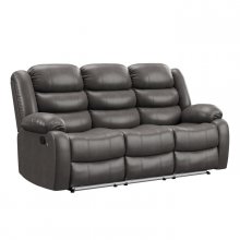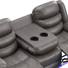 The classic look of the DeWolffe Collection integrates modern design elements, making it an obvious choice for your contemporary living space. This double reclining sofa features dual tab-pull latch mechanisms so you can laze out on either side. A side-mounted button brings an in-home theatre experience with undermounted LED lighting, perfect for setting the tone on any movie night. Luxurious and breathable grey faux leather upholstery is easy on the eyes, and double-stitch detailing enhances the sofa’s tailored appearance. For added convenience, there is a drop-down centre table with two cupholders, so you always have a place to set your snacks and drinks! With its dense seat cushion padding and pillow-style armrests, the DeWolffe is the perfect combination of advanced functionality and timeless style.