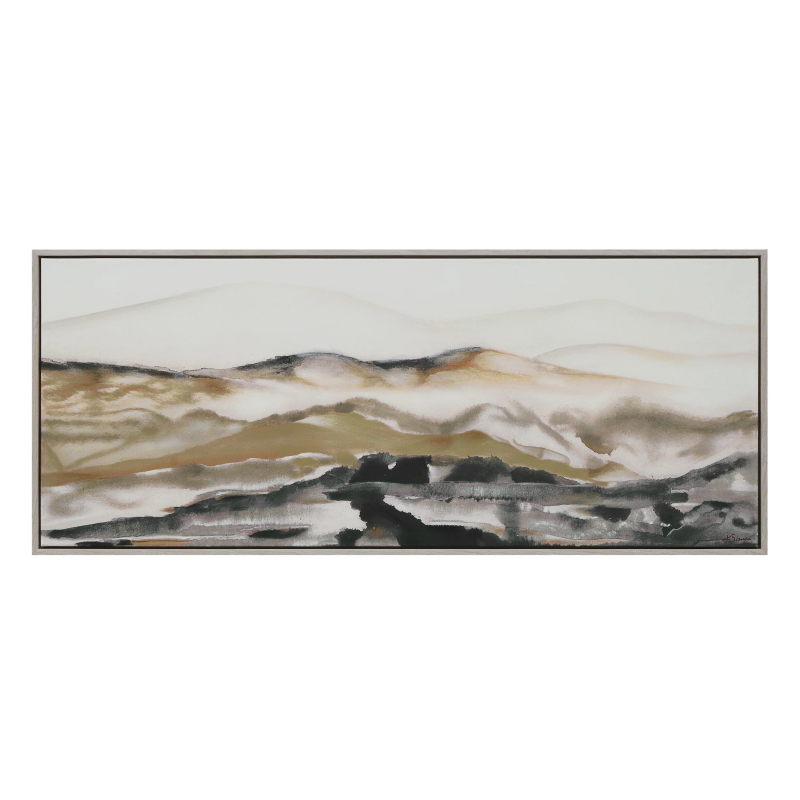Bring a sense of refined tranquility to any space with the Campsis landscape canvas. Hand-painted strokes in thoughtfully blended hues create movement and depth, enhanced by subtle texture and a matte finish. Surrounded by a soft cream frame, this piece offers understated luxury and creates an elegant focal point for contemporary and transitional interiors alike. Product Details: