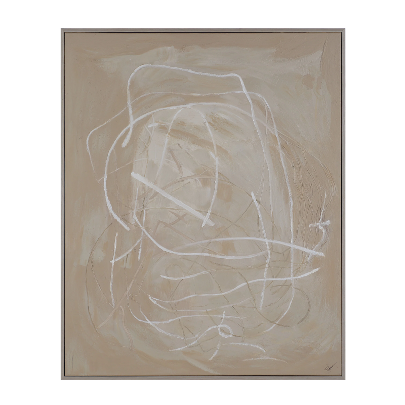 Introduce a calm vibe into your next design project with this neutral abstract art. Hand painted on high-quality canvas, its free-spirited brushstrokes come to life in texture and shadow to set a tone that's modern and timeless. Framed in light oak with a flush mount, the effect is minimalist yet memorable. Product Details: