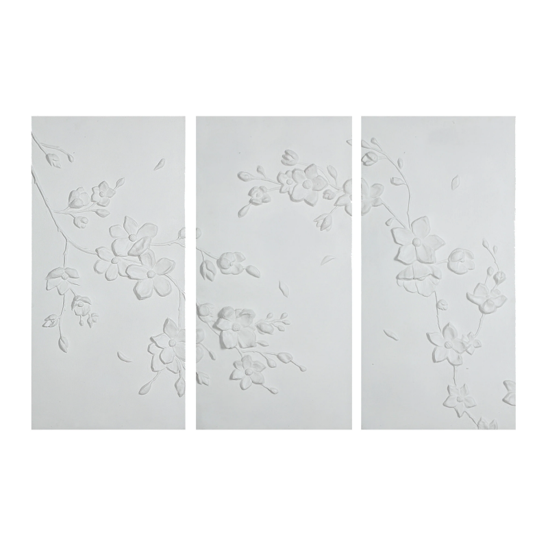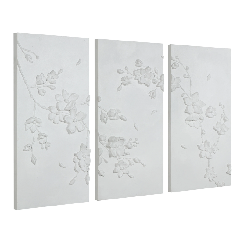 Spanning nearly 5 feet, this bloom-filled wall art is just the piece you need to add beautiful botanical style to a large wall. Composed of three high-quality canvases, this unique triptych features an array of hand-painted multidimensional shapes for a dramatic effect that delivers a transitional touch to any interior. Product Details: