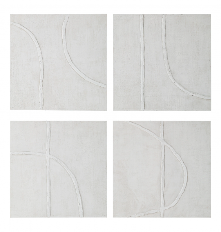 Made up of 4 pieces that together tell a story of great taste, the Cellier wall art set is here to impress. These 100% hand-painted wood boxes feature a textured plaster finish for plenty of visual interest. Brimming with big-impact style, each neutral-toned painting measures 20” x 20” and thanks to a D-ring hanging system can be displayed horizontally or vertically and in a multitude of combinations to suit the space. Perfect for minimalist and modern interiors, whether you display this fabulous foursome as a landscape lineup or as a block of four, any way you hang them, tonal perfection is on point Product Details: