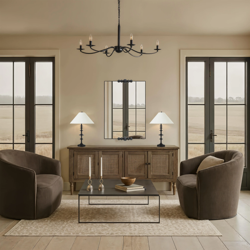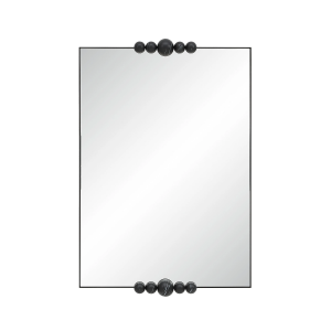 Bring bold character to any modern interior with the Cosmos wall mirror. Its matte black iron frame delivers clean, architectural appeal, while the crystal-clear glass ensures a true, seamless reflection. Accented with sculptural black marbled half-spheres, it introduces subtle artistry and texture. Both stylish and durable, this mirror enhances contemporary spaces with effortless sophistication. Product Details: