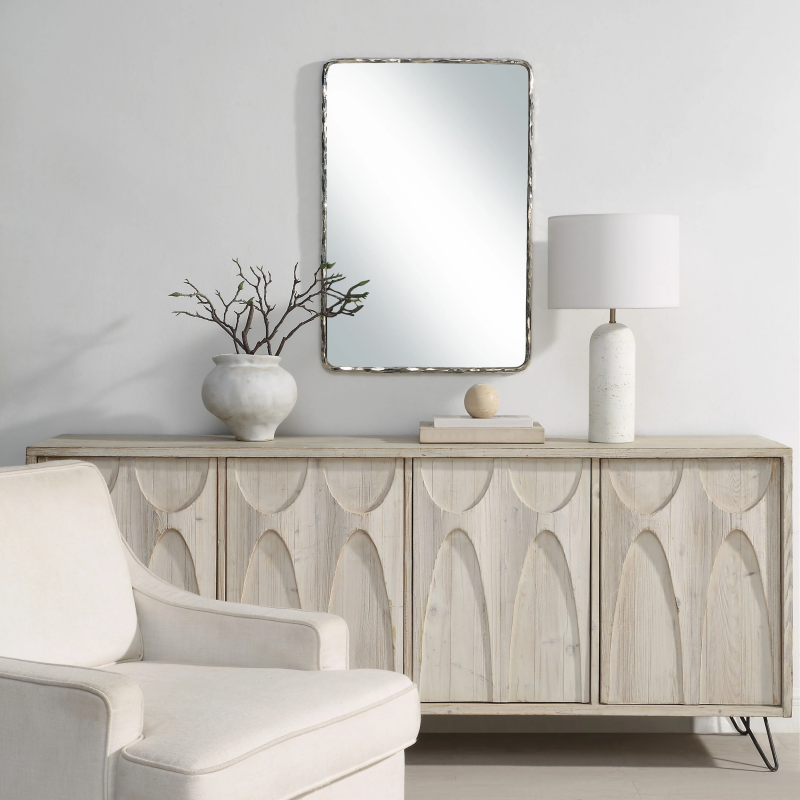 Add form and function to an entryway, bedroom, office or any other space with the understated style of this wall art mirror. A stylish pick for many decorating schemes, its timeless polished nickel-plated frame boasts softly rounded corners and is outfitted with high-quality distortion-free mirror glass for reflection perfection. Product Details: