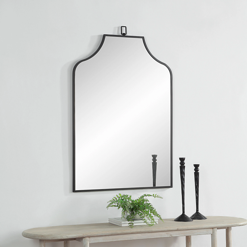 Take your interior decor to the next level with our Breda 45" Tall Rectangular Arch Mirror. This stunning mirror boasts a modern, yet timeless design, featuring a sleek rectangular frame with a distinctive arch-shaped top. Equipped with a D-Ring hanging system, installation is a breeze with versatile display options. The mirror's standout feature lies in its unique four-way hanging, making it a versatile addition to any space. Crafted from high-quality materials, this mirror is both sturdy and durable, making it a long-lasting investment for your home. The mottled brass finish adds a touch of elegance and sophistication, creating a statement piece that seamlessly blends with any decor. Product Details: