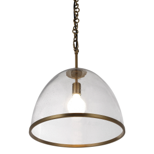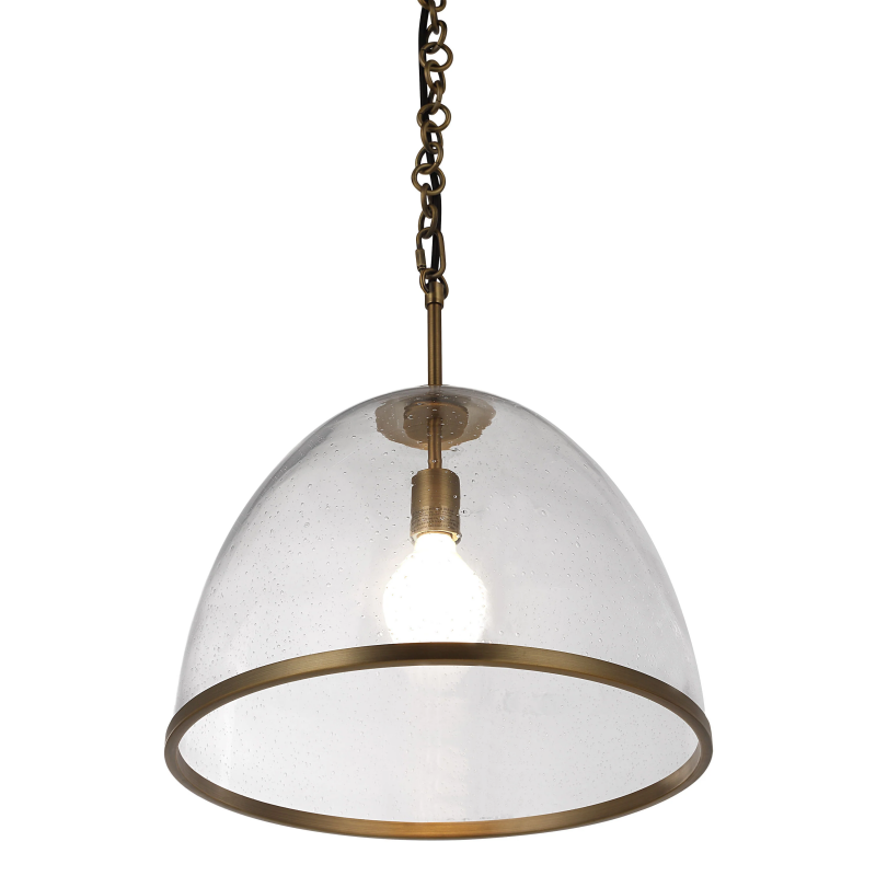 Offering softly diffused, yet ample lighting in any space, this seeded glass light fixture will bring a fresh update to any room. Traditional meets modern in its dome-shaped shade featuring dark antique brass-plated accents. Perfect for hanging solo or in multiples, it's up to you to decide how big an impact you'll make. Product Details: