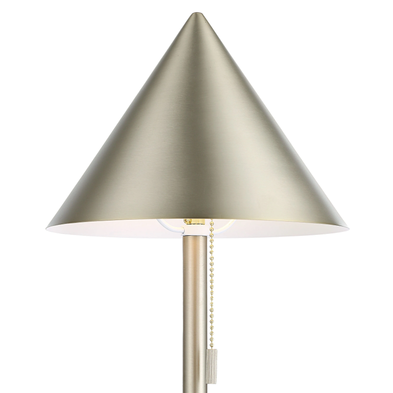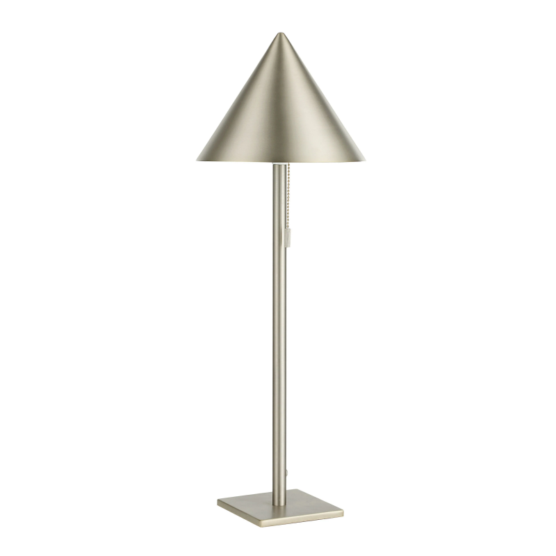 Gorgeous light and style are just a pull of a chain away when you have the Paros table lamp by Arren Williams, Canadian designer and interior stylist at your service. Fans of classic design will love it as much as those who opt for a more modern aesthetic thanks to a clean silhouette that walks the line between the two. A stately cone-shaped shade sits in perfect balance atop a long and lean base, both in a striking champagne plated finish. Put it to work as a pair of bedroom table lamps or try it next to a sofa as a living room lamp. Anywhere it sits, illumination and beauty are guaranteed. Product Details: