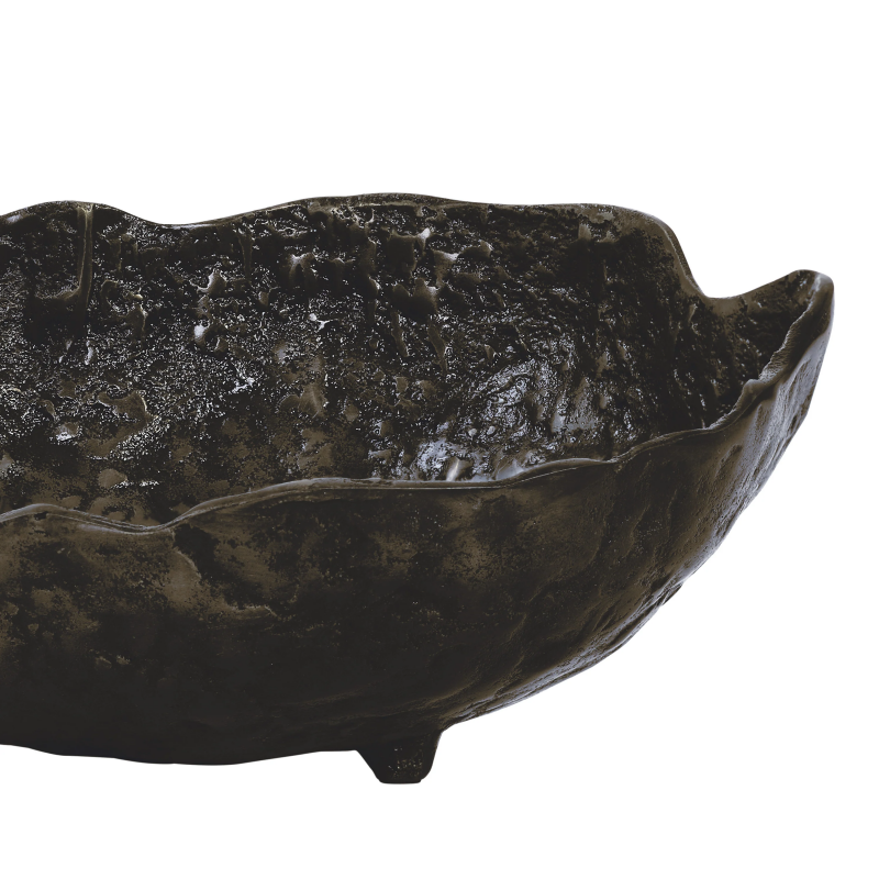 Measuring 15 inches in diameter, it’s easy to make a statement with the bold, sculptural presence of the Sparta footed bowl. Its hammered texture and organic silhouette feel artful and dramatic, while the black brass-plated cast aluminum adds a rich, modern edge. Stunning as a centerpiece or functional accent, it elevates any style, from minimalist to maximalist with effortless flair. Product Details: