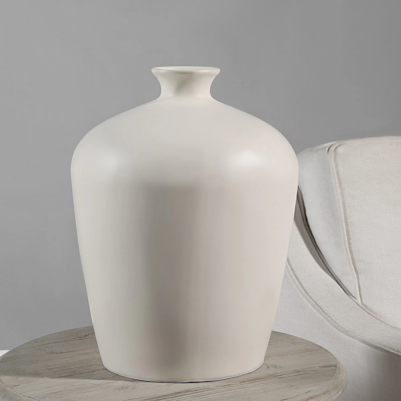 An old-world architectural air radiates from this ceramic vase and into the home. The creamy off-white finish of this accessory pairs equally well with solid-colored furnishings and walls as it does with printed items. This vase can hold dried flowers or sit solo in the home's living room or entryway.