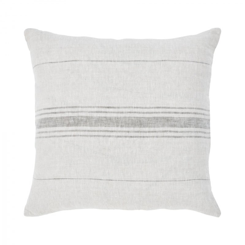 The traditional striped linen pillow takes on a modern transformation with olive hues in this design. An optimal fit for the contemporary casual space, its 20-inch square stature enhances the beauty of the sofa or loveseat. Filled with down feathers, each inch provides a soft spot to rest upon. Product Details: