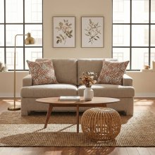 Transform your living space with this sophisticated two-seater loveseat, designed for the perfect balance of modern style and everyday durability. Wrapped in a premium taupe chenille fabric, this piece features a sturdy plywood frame and high-density foam padding reinforced by a pocket coil spring system. The reversible back cushions and matching upholstered legs provide a seamless, upscale look, while two geometric-patterned toss pillows add a designer touch to this comfortable, compact seating solution.
