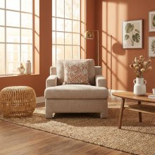 Elevate your living room with this sophisticated oversized chair, expertly crafted to blend contemporary style with enduring comfort. Wrapped in premium taupe chenille upholstery, this chair features a robust plywood frame and high-density foam padding over a pocket coil spring system for superior support. The reversible back cushion and stylish patterned decorative pillow add a tailored look, while the unique upholstered legs create a seamless, high-end aesthetic perfect for any modern home.