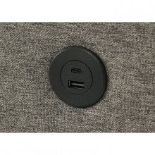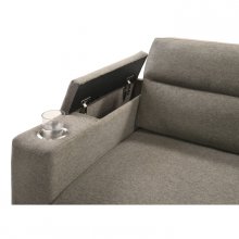 - Loveseat has a track-style arm with a stainless steel cupholder, lift-top storage, and both USB and Type-C charging ports