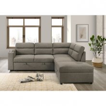 Imagine a seat that doesn’t just look good, but also makes life easier - that’s exactly what the Marasi Collection delivers. This 3-piece sofa sectional is covered in a neutral brown textured linen-like fabric with a contemporary streamlined profile that adds both warmth and style to your living room while offering incredible functionality. The left side loveseat reveals a hidden pullout sleeper that transforms into an instant guest bed, while the armless right side chaise abuts a storage ottoman, giving you the perfect spot to stretch out with an extra place to stow your things all in one. The loveseat's track-style arm also features built-in charging ports, a clever lift-top interior storage compartment, and a stainless steel cupholder, allowing you to keep everything organized and within reach. Durable framing and seat construction rounds out the Marasi's many charms - it’s the perfect balance of comfort, practicality, and style.
