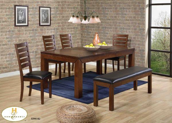 | The Eagleville Collection. Your dining area will become a comfortable and exquisite gathering place when you add this durable and stunning collection. Finished in birch veneers and features a butterfly leaf for convenient extra surface space, while substantial block table legs stand prominently to provide extra structural reinforcement. (can be purchased with or without bench) |