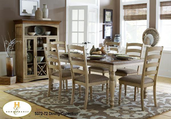 The Nash Collection. Casual Country Dining Collection. Two-tone Table with Butterfly leaf and solid wood top. Featured in warm two-tone buttermilk and medium burnished oak finish. |