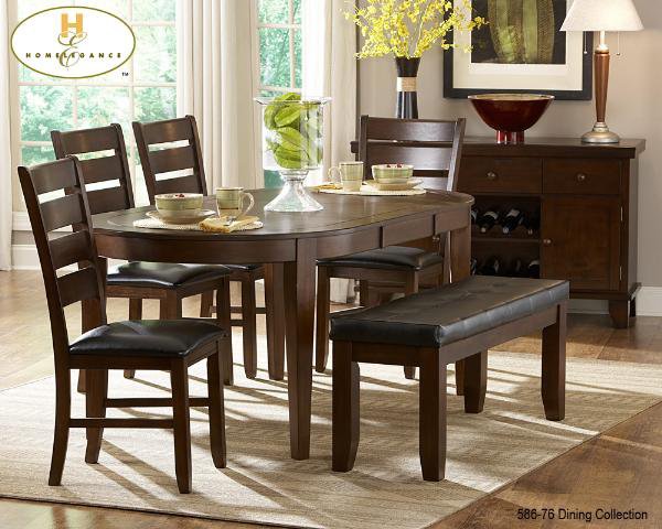 | The Ameillia Collection. Finished in a medium brown with clean line design. The birch veneered table features oval shape top with butterfly leaf supported by massive shaker leg. |