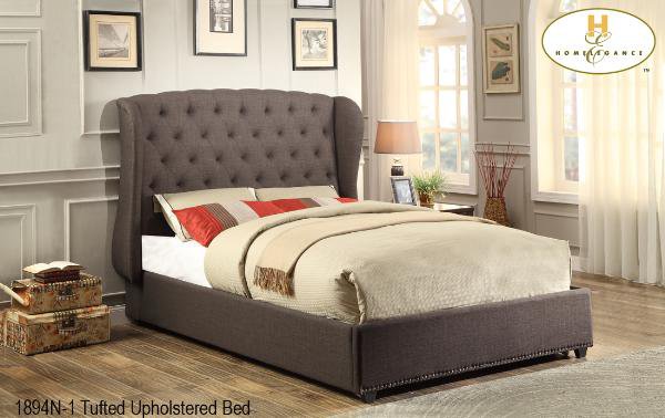 Contemporary Tufted Wing Upholstered Bed in Brown 100% Polyester