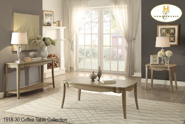 The Ashden Collection. The Ashden Collection creates visual interest with sophisticated modern traditional accents and elegant lines. A driftwood finish enhances the beautiful cathedral grain of the mindy veneer. Distinctive scallop shaping graces subtle molding of the occasional leg tables and enhances the understated elegance of the collection. |