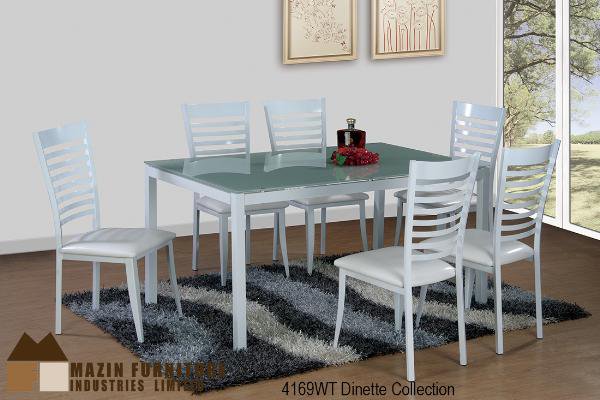 | The Alexis Collection. Modern simplicity is found in the Alexis Collection. Given your choice of white or black, the table features a painted glass top for the ultimate in dining surface protection. Matching painted metal chairs are designed for today's hip d茅cors. |