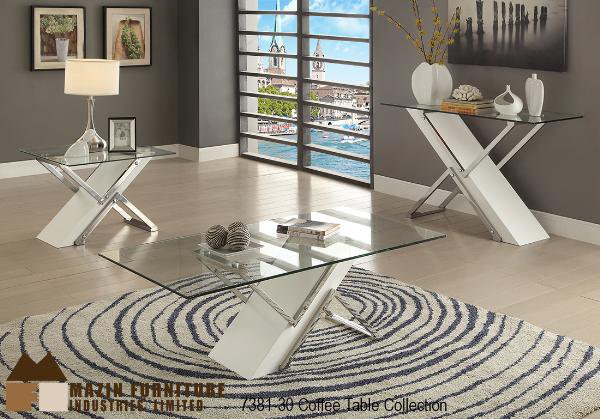 The Atlantis Collection. A bold, diagonal pedestal is counter-pointed by a bright chrome angular support, creating a unique creation in design. The clear top allows you to view the artistry from any angle. |