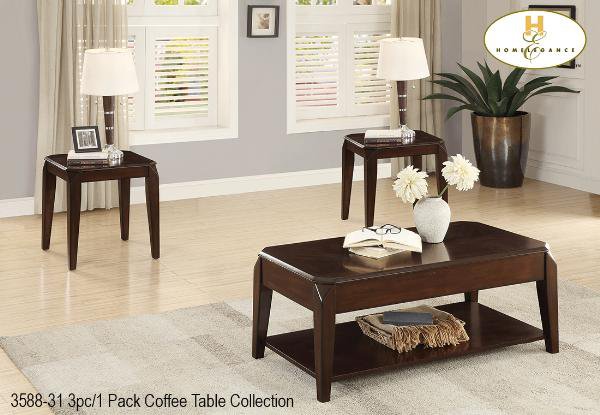 With a design that is refined in its simplicity, the Sikeston Collection will be an elegant addition to your living room. A warm cherry finish is utilized to highlight the book matched veneers that grace each tabletop. Clipped corners provide a decorative touch, the lower display shelves allow for placement of your prized possessions and casters provide functionality with ease of movement of the cocktail table. |