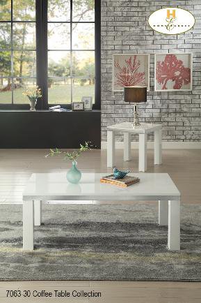 The Rohme Collection. Contemporary elements are perfectly executed in the minimalist look of Rohme Collection. The high gloss white finish of the occasional grouping is complemented by the chrome metal banding that encircles each tabletop. |