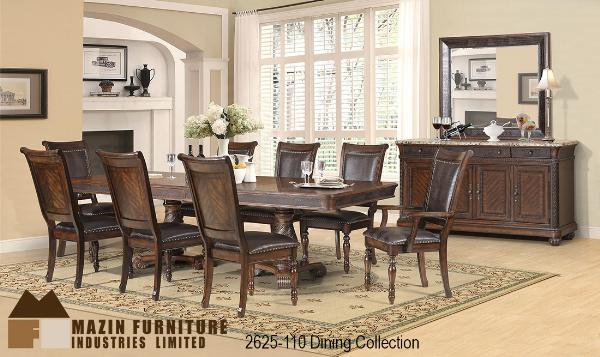 | Traditional Dining Collection featuring marble top on server which is beautifully accented by a wall mirror. Brown Cherry finish |
