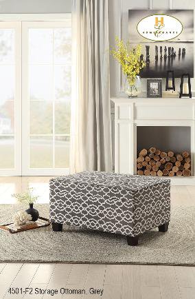 Rectangular Storage Ottoman in a Grey and White patterned Fabric