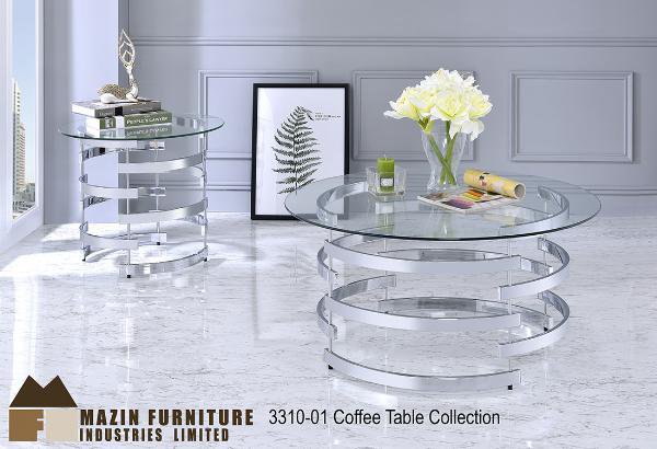 The Spiro Collection. Get a divine dose of contemporary glam with the stunning cylindrical interlocking base beneath round tempered glass. The chrome finish is a classy compliment to this airy design perfect for a casual or formal space. |