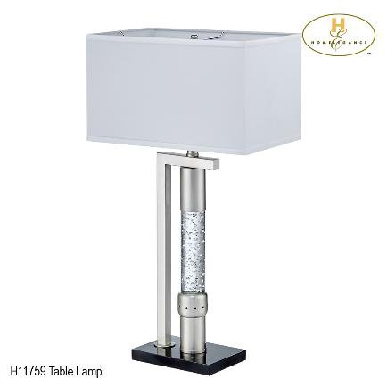 The Jalen Collection. This accent lighting can change the ambiance of any room. Its ultra modern design showcases sparkling decorative mood light, with tiny rippling water-droplets to simulate the soothing dancing water motion. Beautifully crafted stand features high quality satin nickel finish metal and glass, and an elegant rectangular lamp shade on black base. Great addition piece on your night stand, end table, or sofa table. It offers flexible lighting solution: a table lamp with a main light that is suitable for reading, perfect for a night light, and to create the mood in any room.