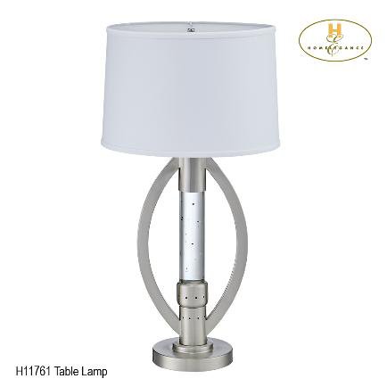 The Lucian Collection. This accent lighting can change the ambiance of any room. Its ultra modern design showcases sparkling decorative mood light, with tiny rippling water-droplets to simulate the soothing dancing water motion. Beautifully crafted stand features high quality satin nickel finish metal and glass, and an elegant circular lamp shade on black base. Great addition piece on your night stand, end table, or sofa table. It offers flexible lighting solution: a table lamp with a main light that is suitable for reading, perfect for a night light, and to create the mood in any room.