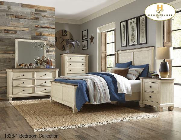 Casual Country Bedroom Collection in an Antique White and Rosy Brown finish.