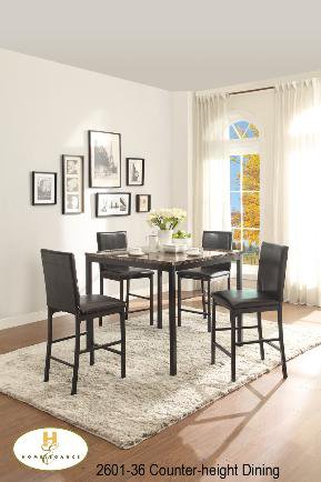 The Tempe Collection. With a scale appropriate for any number of smaller dining spaces, the Tempe Collection will provide the look and style you want in your home. The transitional feel of the group comes from the richly hued faux marble table top and the minimalistic design of the dark brown bi-cast vinyl chairs. The table and chair are constructed of metal in black finish. The collection is available in counteror traditional dining heights.