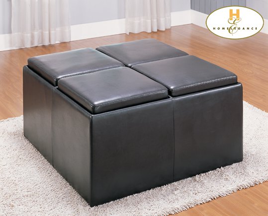 The Claire Collection. Functional cocktail ottoman features seating that reverses to reveal 4 individual serving trays and 4 cleverly stored stools. |