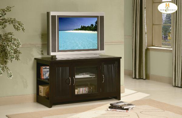 | The Pepperville Collection. Contemporary collection features fluted paneling, glass front and side media storage. Available in espresso finish on select hardwoods and birch veneer with satin nickel hardware. Ready to assemble construction. |