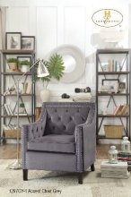 Traditional Accent Chair Collection featuring tufted back and nail head accents. Offered in Blur or Grey Fabric