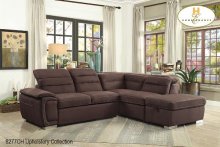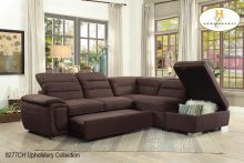 3pc Sectional featuring a pull-out bed, adjustable headrests and a storage ottoman. Offered in Chocolate Fabric
