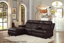 Motion Upholstery Collection featuring a loveseat with console and offered in Black or Dark Brown Leatherette.