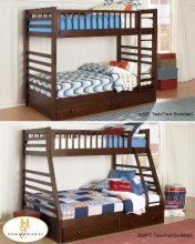 This twin over twin nk bed in a brown cherry finish uses a continuous line from top to bottom bunk to produce a light, open and contemporary look. Slide under drawers on casters provide extra storage. Combine with our memory foam T6N or T8N and F8N mattresses for added comfort and one-stop shopping.