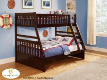 The Tops Collection. The lower twin bed is designed to move on casters, allowing for functional placement in your childs room and with a built-in chest, space is maximized to the fullest extent. Dark Cherry finish