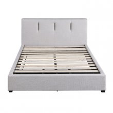 The streamlined design of the Aitana Collection provides a functional focal point for your bedroom. With styling that lends to placement in modern environments, the upholstered bed’s profile is defined by its low-profile and gray linen-like fabric for neutral accent to your bedroom’s modern decor. The queen platform bed’s low-profile footboard conveniently pulls out to reveal a storage drawer, providing functional space to store your essentials.
