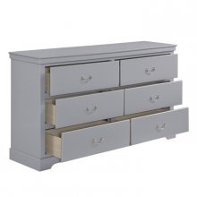 Merging traditional and transitional design creates the look of the Seabright collection, providing a unique platform from which to style your bedroom. The gray painted finish allows for excellent versatility of placement and decorative inspiration. The traditional styling of the satin nickel bale and pull hardware complements the dresser lending to the classic profile.
