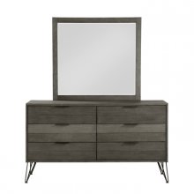 Perched atop metal legs, creating a dramatic statement of contemporary styling, the Urbanite Collection is a perfect reflection of your modern style preference. The dresser’s solid acacia wood with acacia veneer is highlighted by a 3-tone grey finish that allows the variance of the natural grain to shine. The horizontal slat design, six-drawer configuration and metal pull tab hardware lend to the clean, contemporary look.