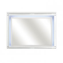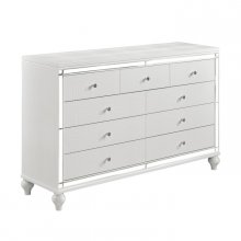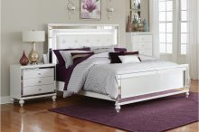 Adding a bold touch of glamour to your boudoir is the Alonza Collection. Finished in a metallic white, the embossed alligator board is reflected in the inlay mirrors of the dresser. Turned feet provide a distinct departure from the linear design of the collection, adding a distinctly feminine flair. Drawer pulls add to the allure of the collection with an inlay crystal and chrome look.