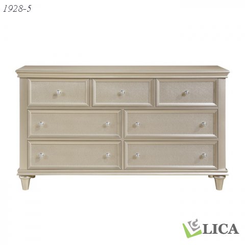 The look of traditional design is updated for the modern traditional home in the Celandine Collection. The high polished knob hardware stands out from the silver finish of the dresser. With each of the aforementioned elements, subtle glamour will be achieved in the design of your elegant bedroom.