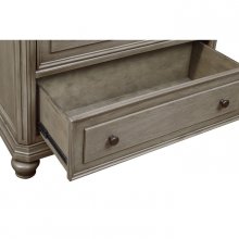 Transitional styling is paired with classic appointments and modern technology to create the Lavonia Collection. Turned feet support the chest with recessed drawer fronts and knob hardware providing dramatic style to the piece. A gray wire-brushed finish over ash veneer furthers the classic look of this piece.