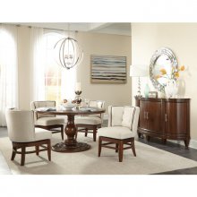 The modern traditional styling of the Oratorio Collection allows the realization of your dream dining room. The barrel back, contoured swivel chair’s memory motion provides unique function. Cherry finished legs provide complementing contrast to the neutral tone of the fabric seat.