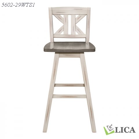 Creating a subtle rustic look for your dining space is the Amsonia Collection. A white sand-through finish graces the solid rubberwood 29-inch divided X-back swivel counter height chair, highlighting the veneer.