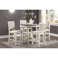 The transitional style of the Asher Collection creates a versatile platform to inspire your casual dining room décor. The antique white finish over acacia veneer serves to highlight the wood-framed counter height chair's grain while allowing for maximum versatility in decorative accenting with the beige fabric seats providing complementing contrast.