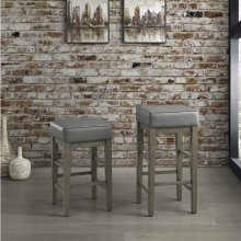 Transitional styling paired with versatility of selection makes the Pittsville Collection a perfect addition to your home’s casual dining spaces. Whether pairing with a table that you already have, adding seating to your countertop or casual entertaining space, the 29-inch pub height stool will be the perfect fit. The square gray faux leather seat is paired with antiqued gray finished wood framing for decorative versatility.